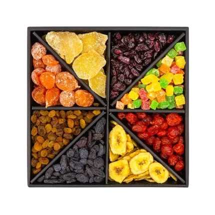 Набір “Фруктове нашестя” – це справжній вибух смакових відчуттів, який не залишить байдужим нікого! Поєднання різноманітних сухофруктів створює унікальний асорті,