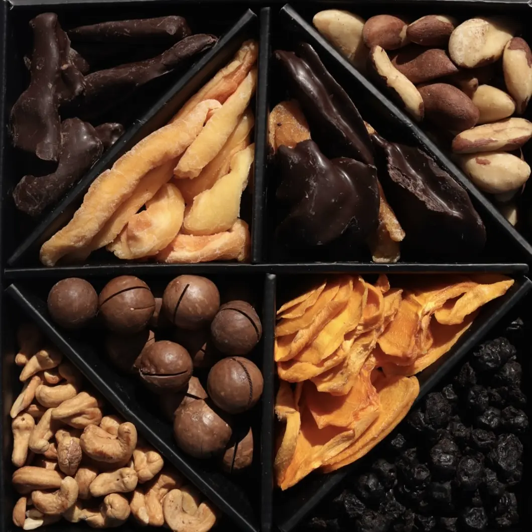 Наслаждайтесь изысканным десертным набором "Десертная гармония" – идеальным сочетанием вкуса и качества! Этот премиум набор из отборных орехов, сухофруктов и нежного шоколада создан для настоящих гурманов.